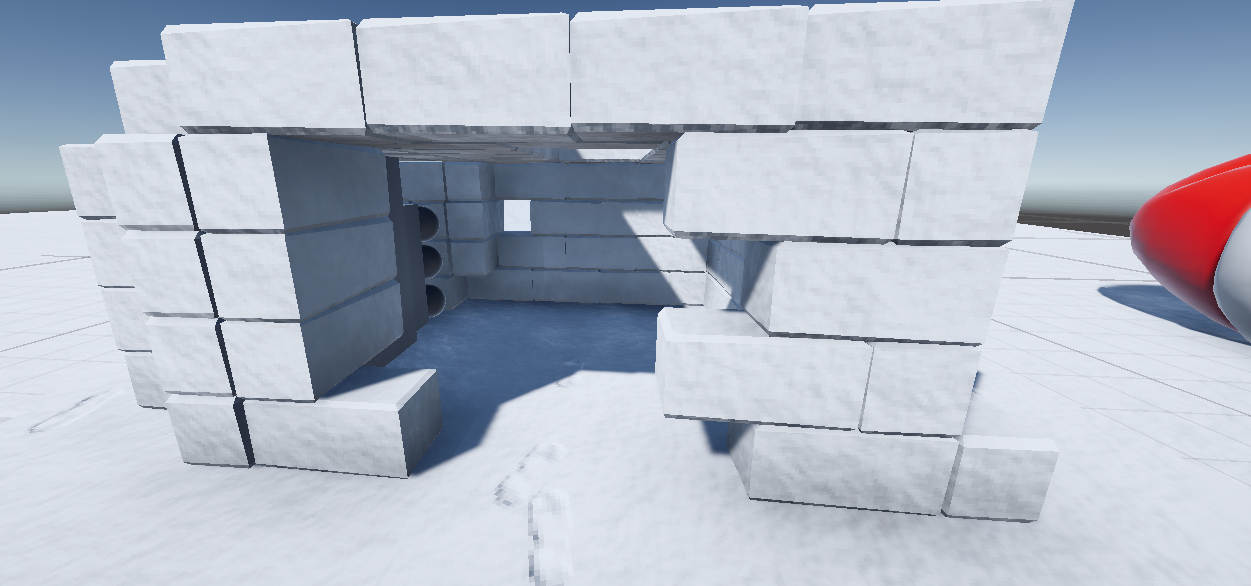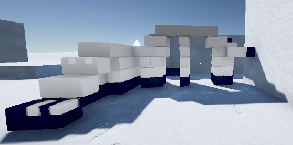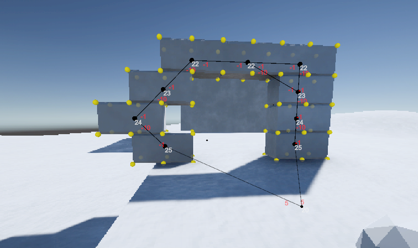 structural integrity stress values. lighter values -> more stable. blue bricks are anchored to terrain, so they are 100% stable